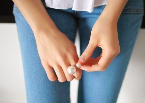 Anel duas pérolas regulável R$ 15,00